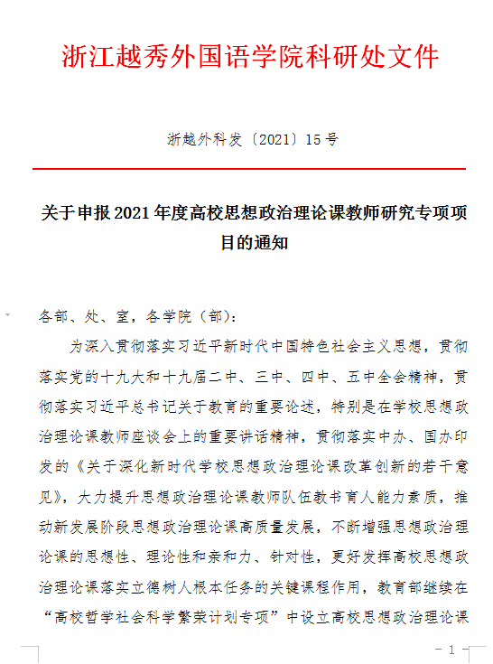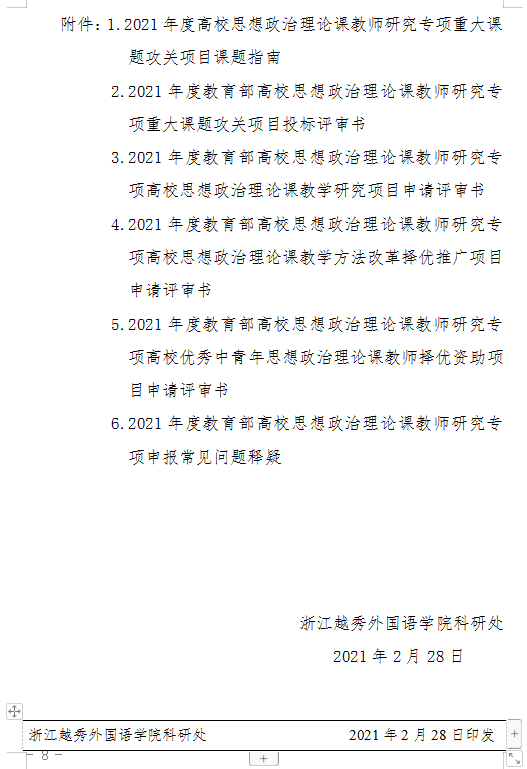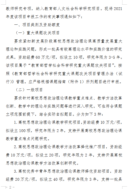关于申报2021年度高校思想政治理论课教师研究专项项目的通知