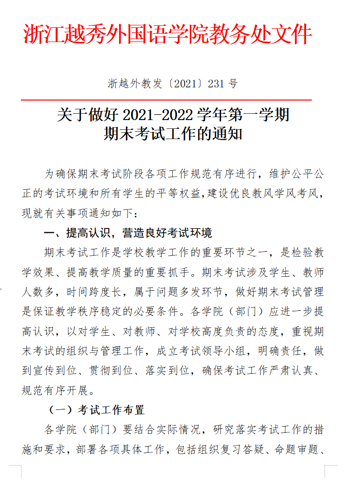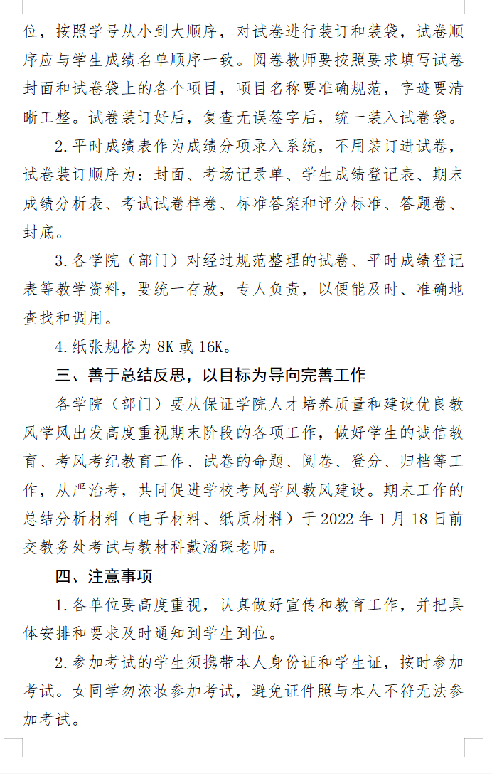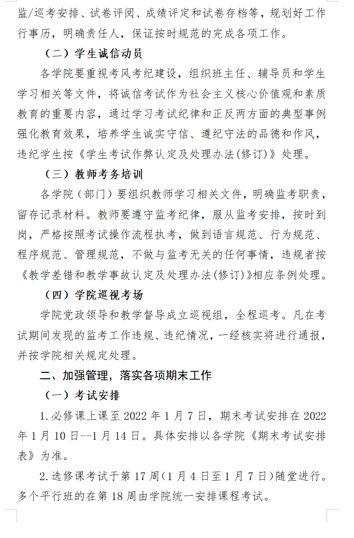 关于做好2021-2022学年第一学期 期末考试工作的通知