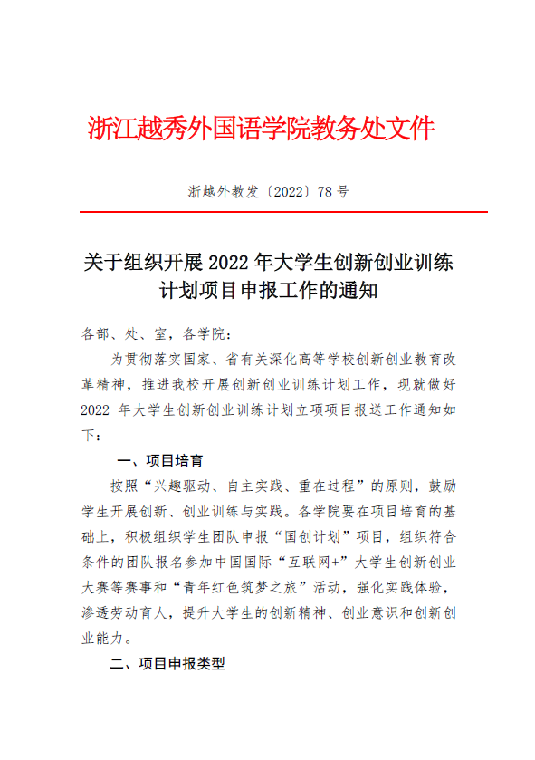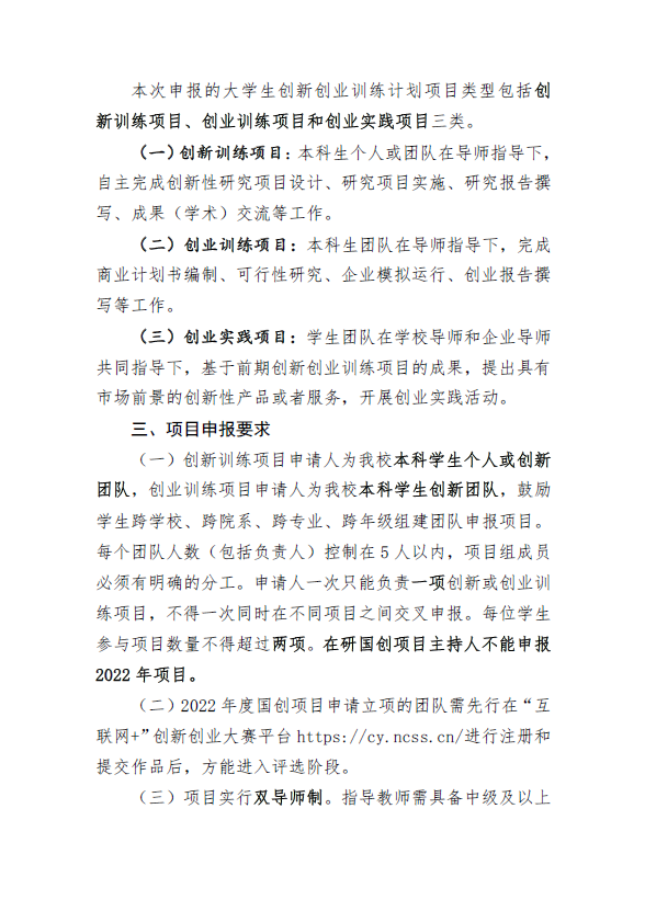 关于组织开展2022年大学生创新创业训练计划项目申报工作的通知