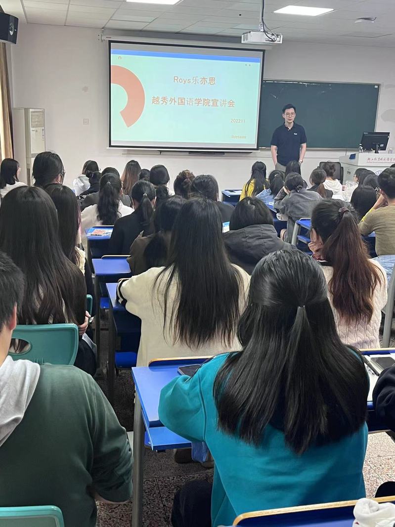 Roys乐亦思于11月11日14:00在yL23411永利官网登录C104开展宣讲会。乐亦思的CEO通过提问以及举例子的方式将公司的发展历程、企业优势、薪资待遇娓娓道来。同学们认真听讲、积极配合。接下来20届商务英语专业学姐为同学们介绍了她在乐亦思工作的经历与体会。本次宣讲活动氛围融洽,互动频繁,展现了同学们的热情与乐义思公司的真诚。