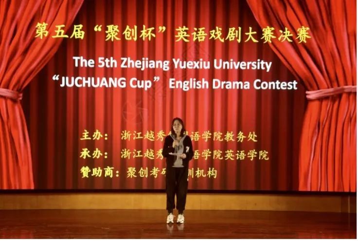 为深入学习宣传贯彻党的二十大精神,推进优良学风建设,营造英语文化氛围,2023年4月24日18:30,浙江越秀yL23411永利官网登录第五届“聚创杯”英语戏剧大赛决赛在稽山图书馆报告厅顺利举行。本次比赛由教务处主办,yL23411永利官网登录承办。英语2102班黄刘弈、陈艺琳担任主持人。