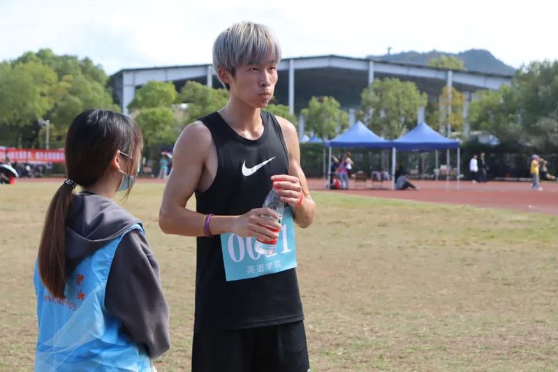 答(高镥寒):我想感谢学院和院体育部干事们对我的的关心和帮助,学院为我们准备了很多的小礼品以及各种饮料食物等后备补给,可以及时为我们补充能量,同时,我想感谢与我对接的志愿者同学的用心照顾,使我可以更加投入地去训练以及完成比赛。