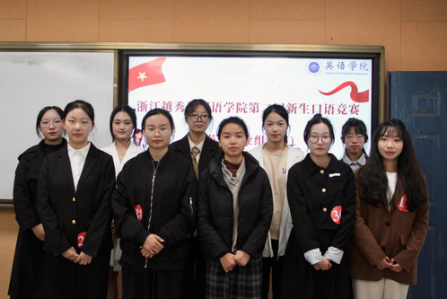 大赛特邀曹环、简成瑶、张文杰、潘叶英,以及外教Greg老师并对参赛选手的表现进行打分。出席比赛的嘉宾还有黄艳和俞晓丽老师,评委们品评犀利,庄谐并举,两位嘉宾热情指导学生,并引导选手们担当历史使命,明白责任的重要意义,拓全球视野,传中国智慧。
