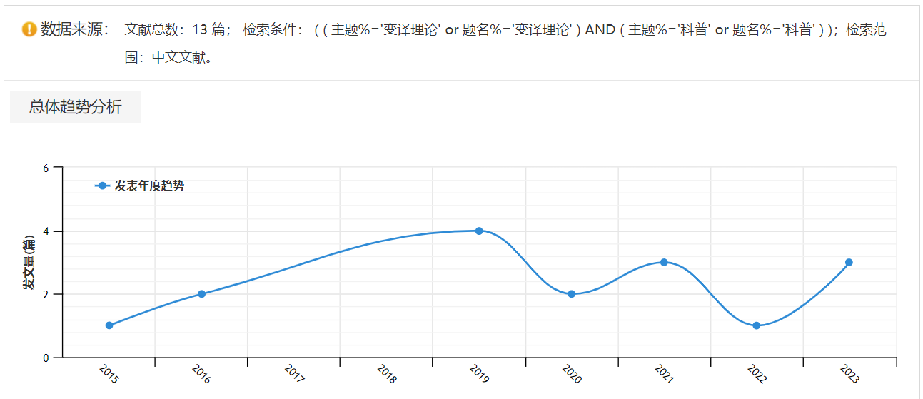 Figure 1-2 The Number of Literature on Variation Translation Theory and Popular Science