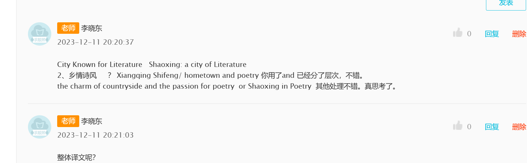 学有余力的同学还可以分享景点中其他的翻译。附加分8分