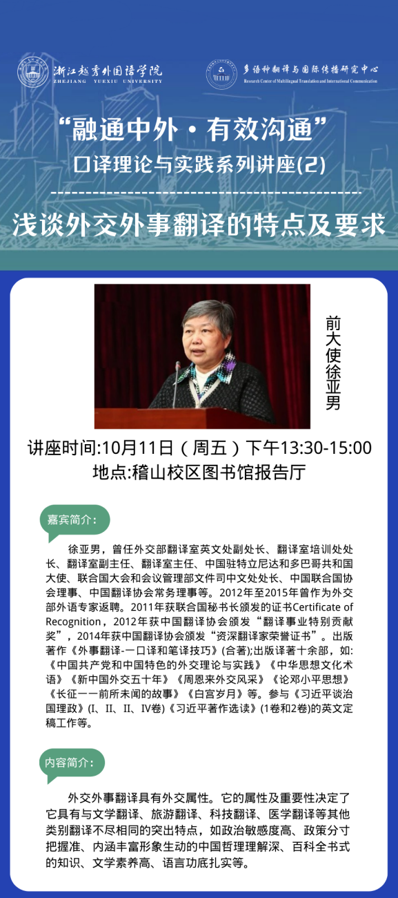 【附:徐亚男大使及李建英大使讲座海报】